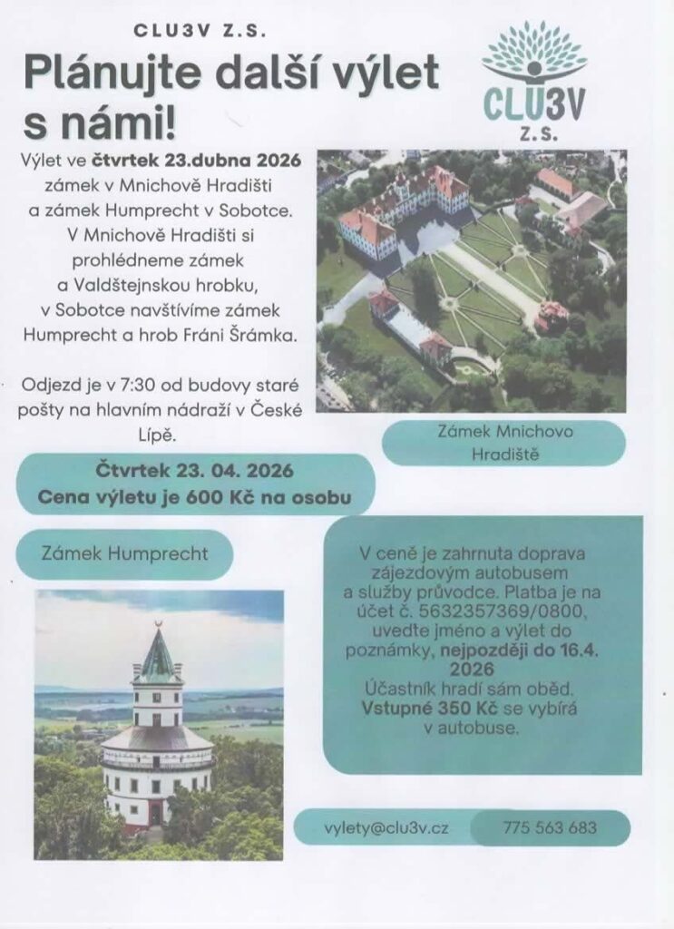 Ve čtvrtek 23 .4. 2026 výlet do Mnichova Hradiště a na Humprecht.